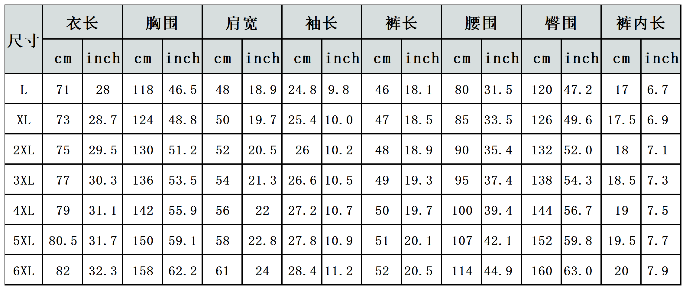 【特别说明】此尺码数据在衣服平铺下测量所得,因测量方法不同,误差在1-3cm内的属于正常现象