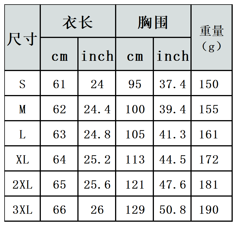 【特别说明】此尺码数据在衣服平铺下测量所得,因测量方法不同,误差在1-3cm内的属于正常现象