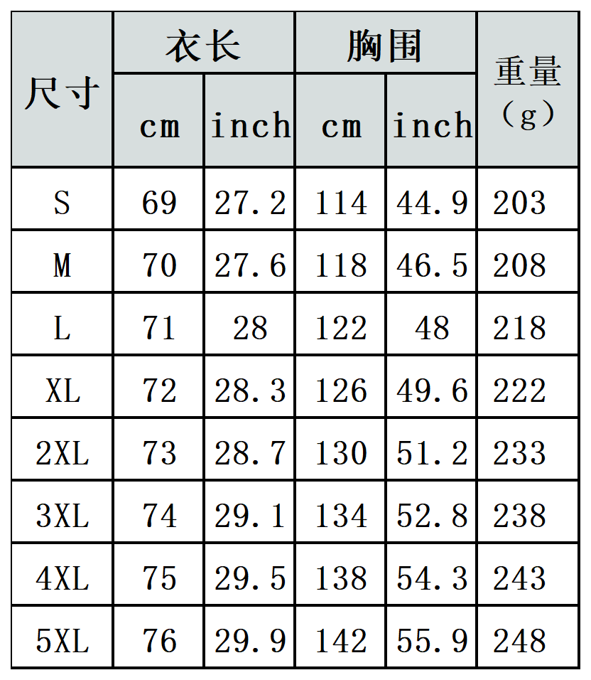 【特别说明】此尺码数据在衣服平铺下测量所得,因测量方法不同,误差在1-3cm内的属于正常现象