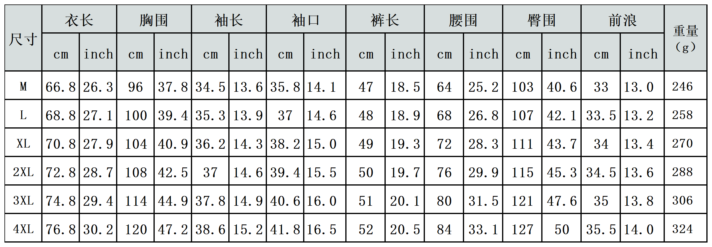 【特别说明】此尺码数据在衣服平铺下测量所得,因测量方法不同,误差在1-3cm内的属于正常现象