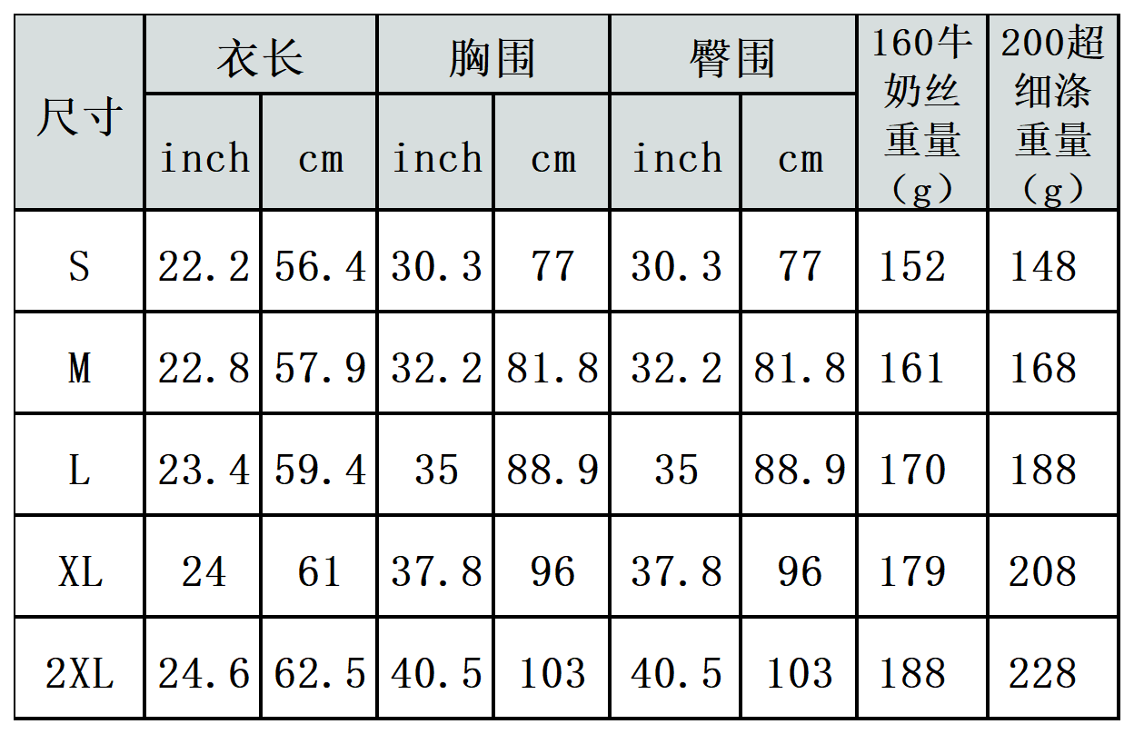 【特别说明】此尺码数据因测量方法不同,误差在1-3cm内的属于正常现象。