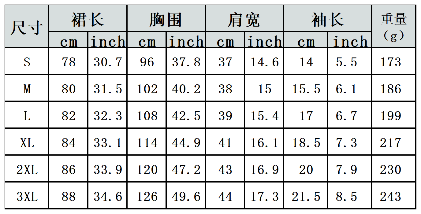 【特别说明】此尺码数据在衣服平铺下测量所得,因测量方法不同,误差在1-3cm内的属于正常现象