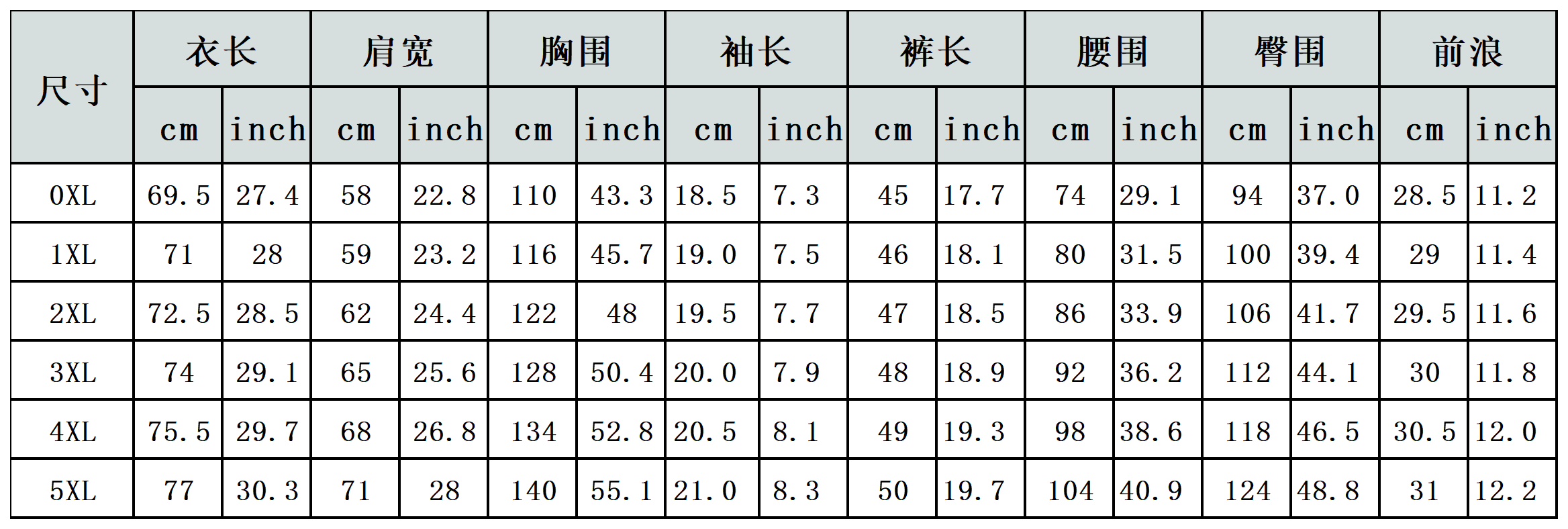 【特别说明】此尺码数据在衣服平铺下测量所得,因测量方法不同,误差在1-3cm内的属于正常现象