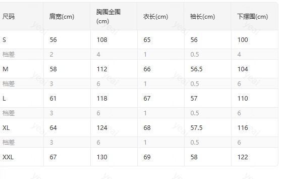 【特别说明】此尺码数据在衣服平铺下测量所得,因测量方法不同,误差在1-3cm内的属于正常现象