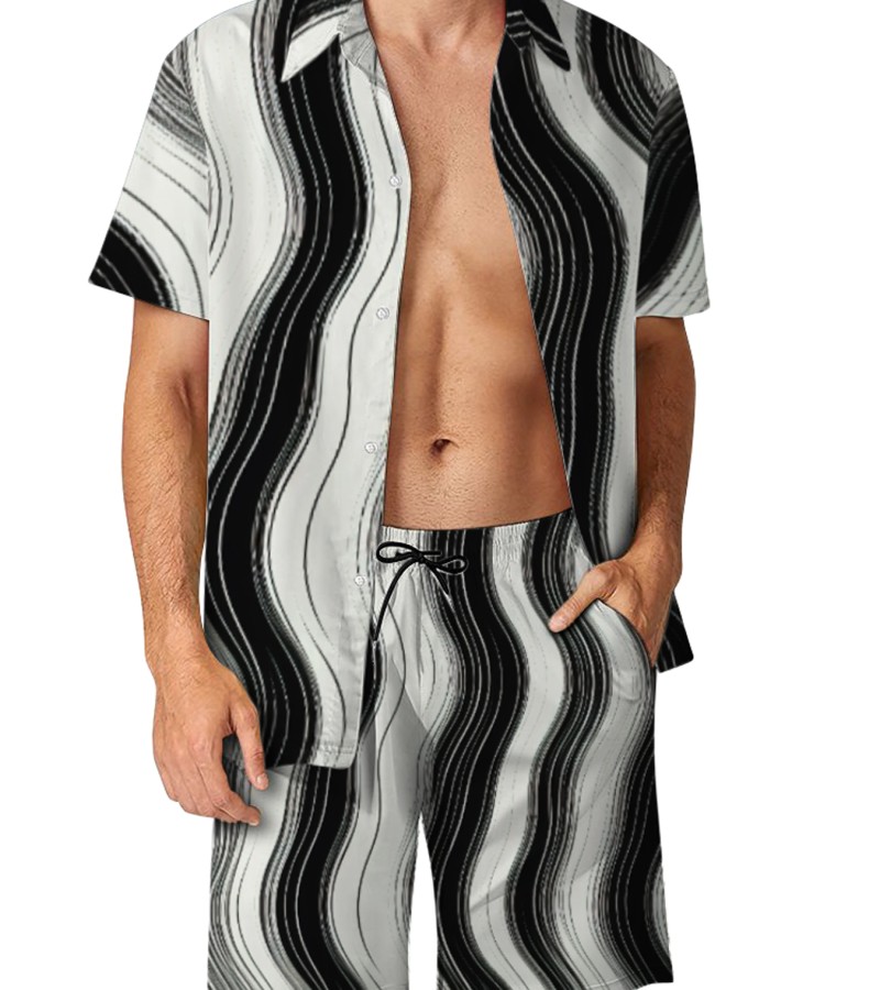 男士短袖衬衫双侧口袋短裤套装-P_R0039