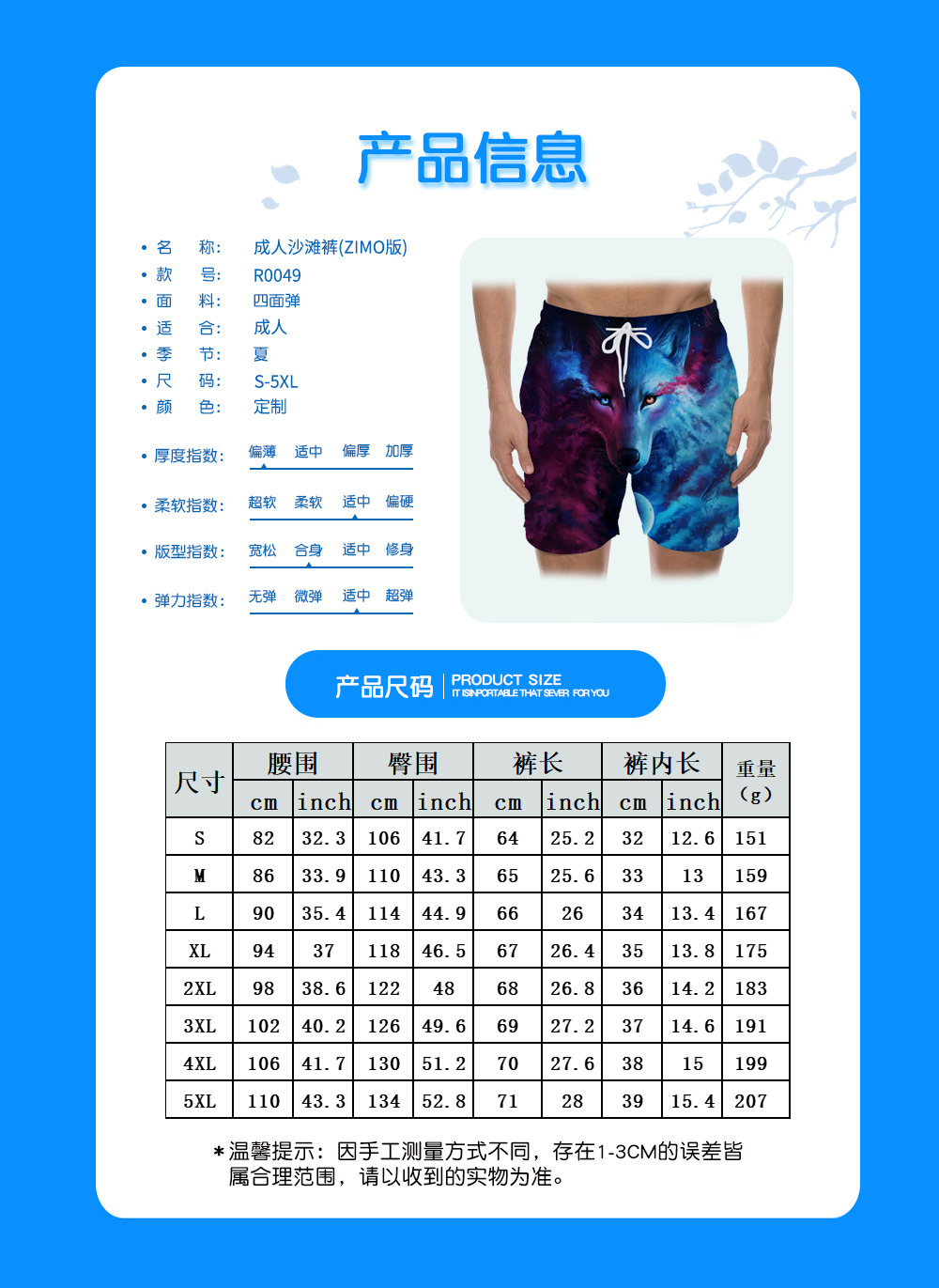 中文名称: 3D 沙滩裤欧码加大版英文名称: Men's beach shorts产品编号:R0049生产工艺: 满印印花产品材质: 四面弹