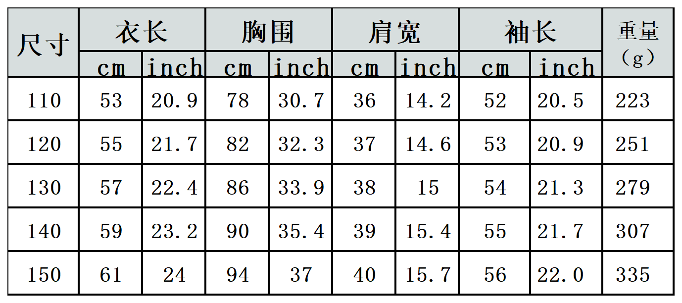 【特别说明】此尺码数据在衣服平铺下测量所得,因测量方法不同,误差在1-3cm内的属于正常现象