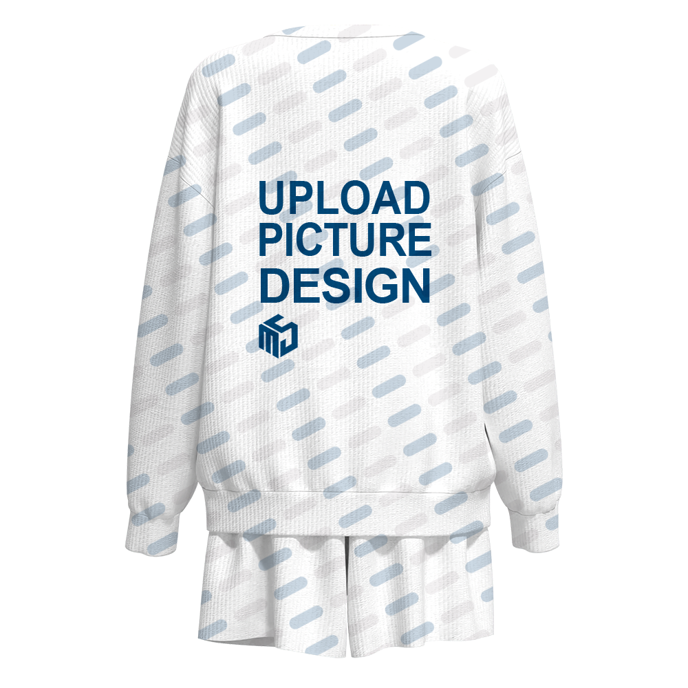 文名称:女士长袖圆领短裤套装有袋有袖口无脚口英文名称:产品货号:XHY067S生产工艺: 满印印花产品材质:空气层