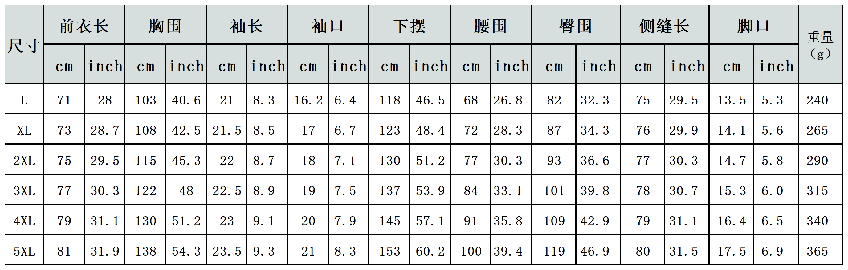 【特别说明】此尺码数据在衣服平铺下测量所得,因测量方法不同,误差在1-3cm内的属于正常现象。