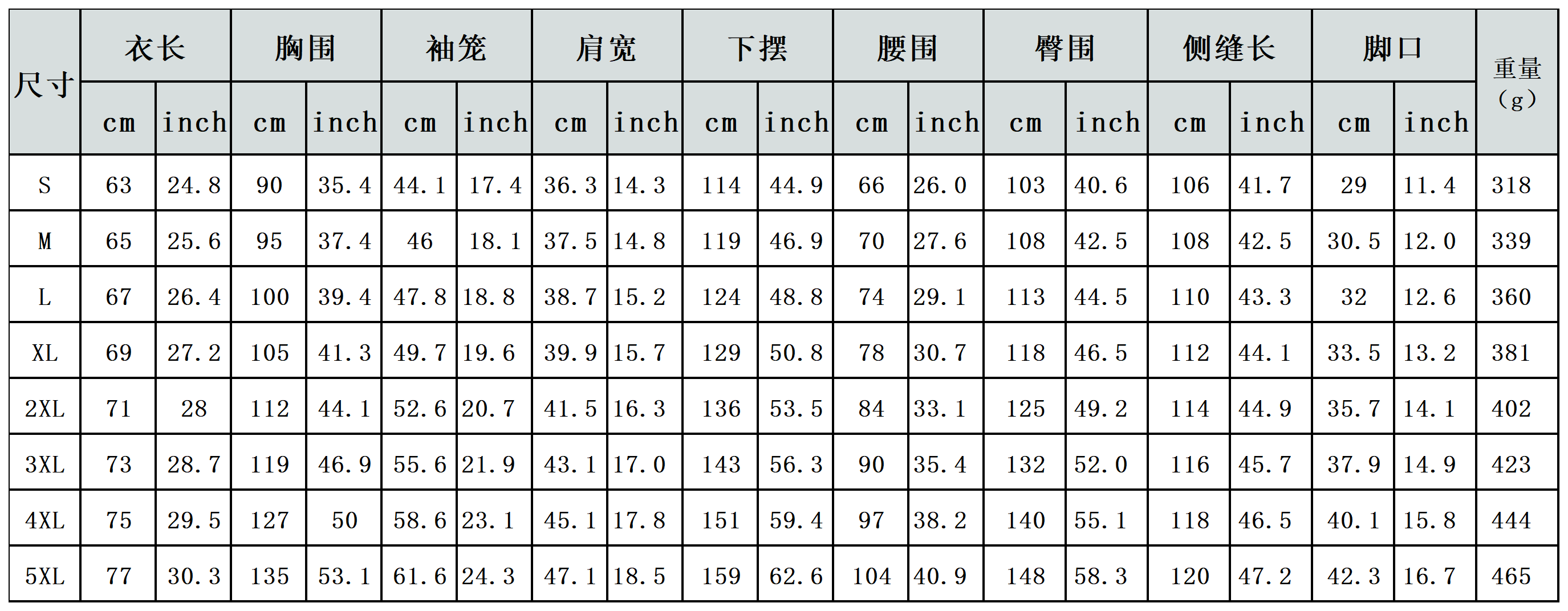 【特别说明】此尺码数据在衣服平铺下测量所得,因测量方法不同,误差在1-3cm内的属于正常现象。