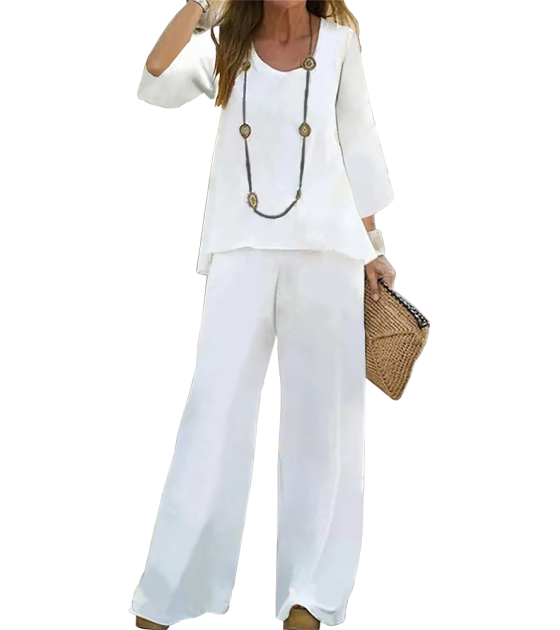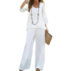 女仿麻U领8分袖长裤套装LTW20515