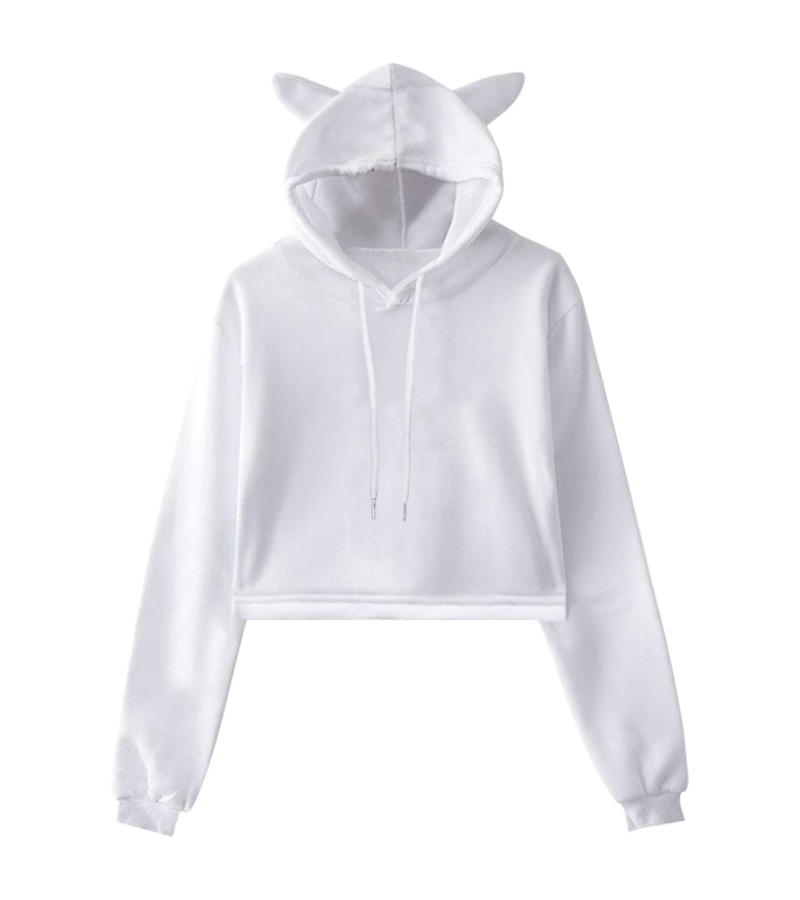中文名称: 3D 猫耳朵卫衣露脐装 英文名称: Cat ear hoodie with bare midriff 产品编号:A0011生产工艺: 满印印花产品材质:220g空气层