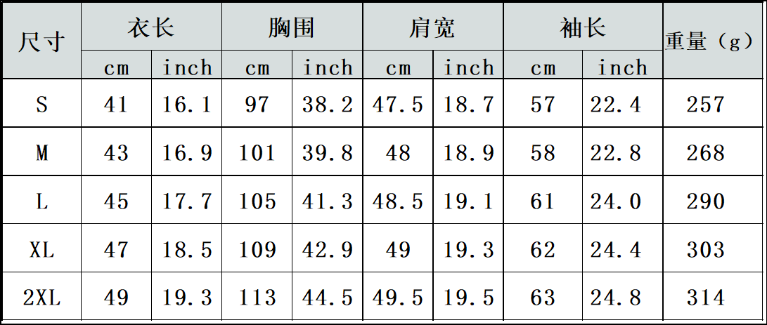 【特别说明】 此尺码数据在衣服平铺下测量所得,因测量方法不同,误差在1-3cm内的属于正常现象