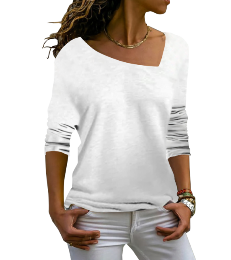 歪V领长袖T恤 (LTW20089)