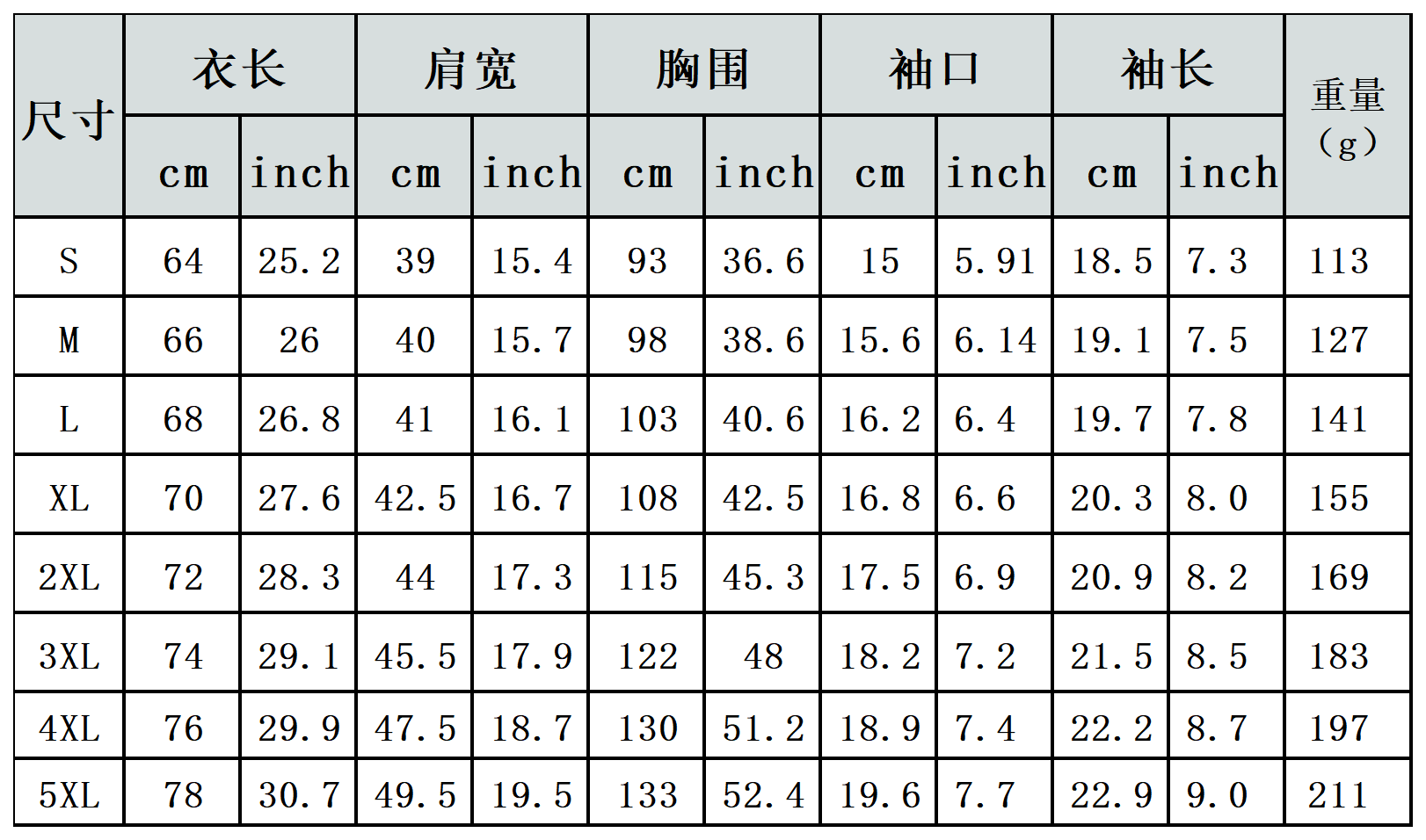 【特别说明】此尺码数据在衣服平铺下测量所得,因测量方法不同,误差在1-3cm内的属于正常现象。