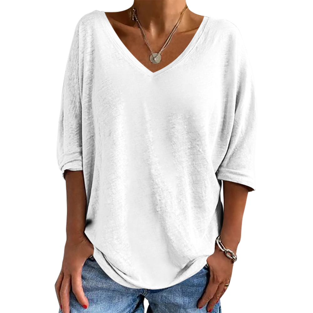 200g仿棉-女数码印仿棉7分袖V领T恤LTW20350