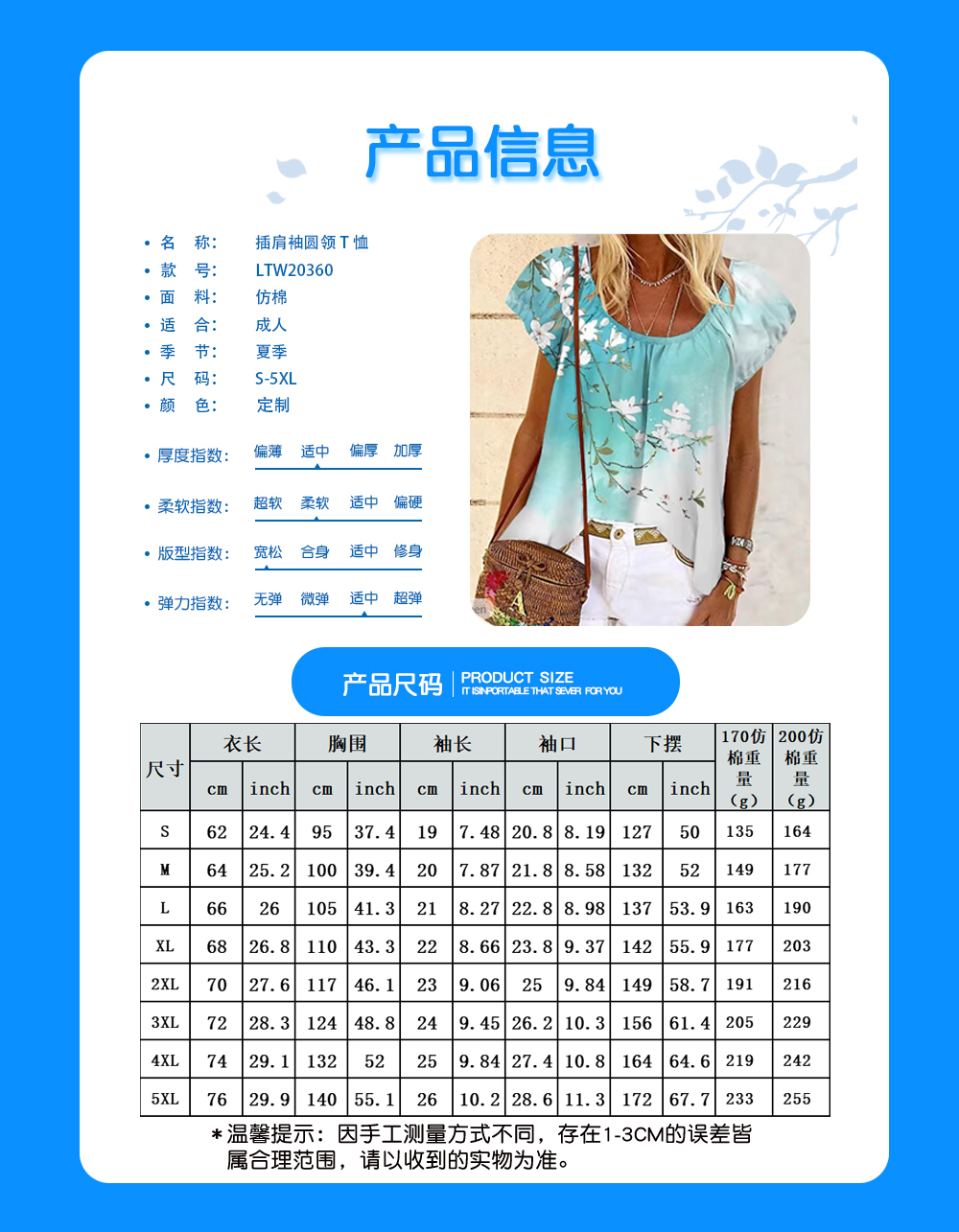 【特别说明】此尺码数据在衣服平铺下测量所得,因测量方法不同,误差在1-3cm内的属于正常现象。