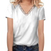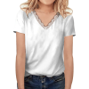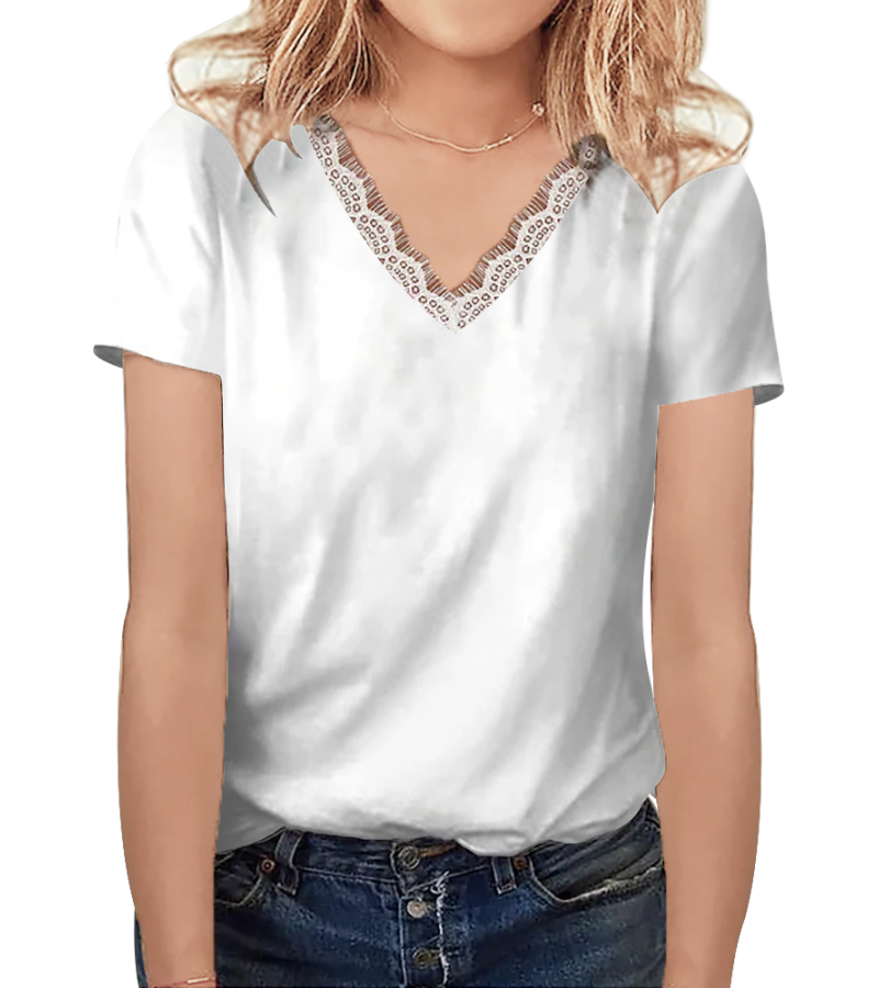 女数码印仿棉短袖V领短T恤蕾丝款-LTW20088