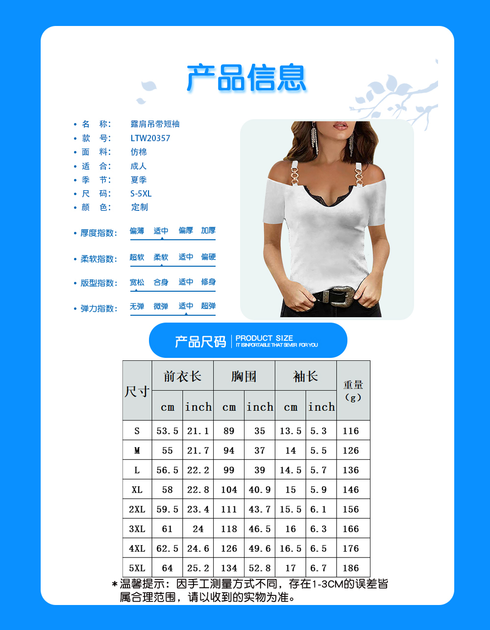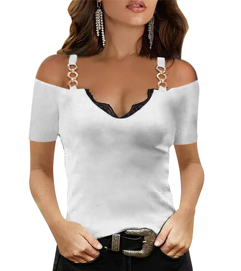 中文名称:露肩吊带短袖T恤英文名称:产品货号:LTW20357生产工艺: 满印印花产品材质: 仿棉