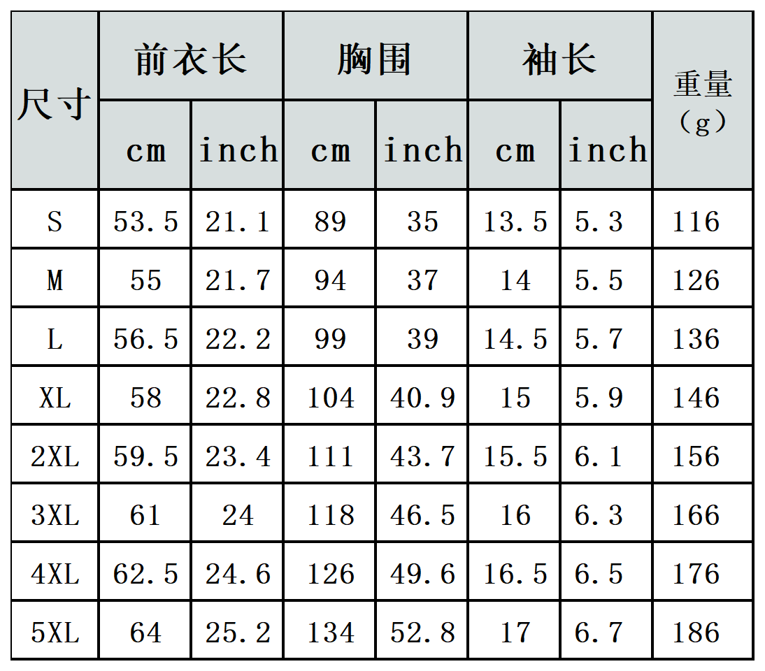【特别说明】此尺码数据在衣服平铺下测量所得,因测量方法不同,误差在1-3cm内的属于正常现象。