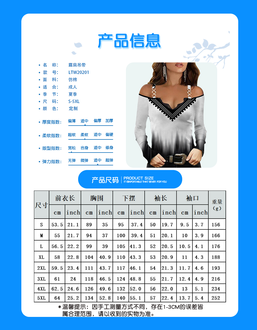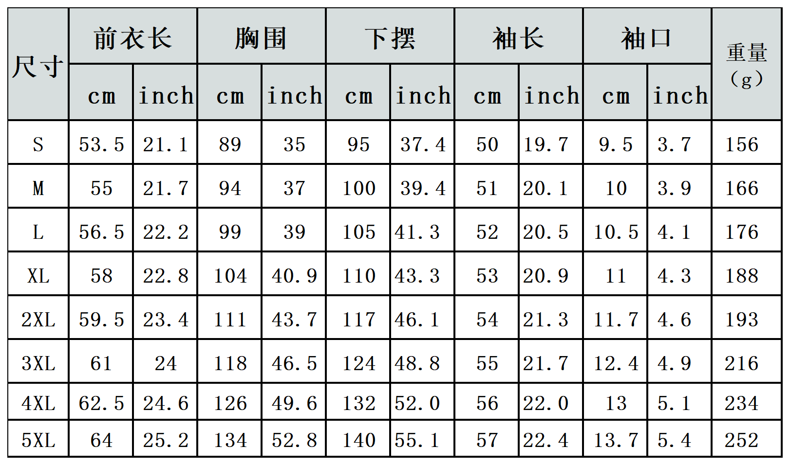 【特别说明】此尺码数据在衣服平铺下测量所得,因测量方法不同,误差在1-3cm内的属于正常现象
