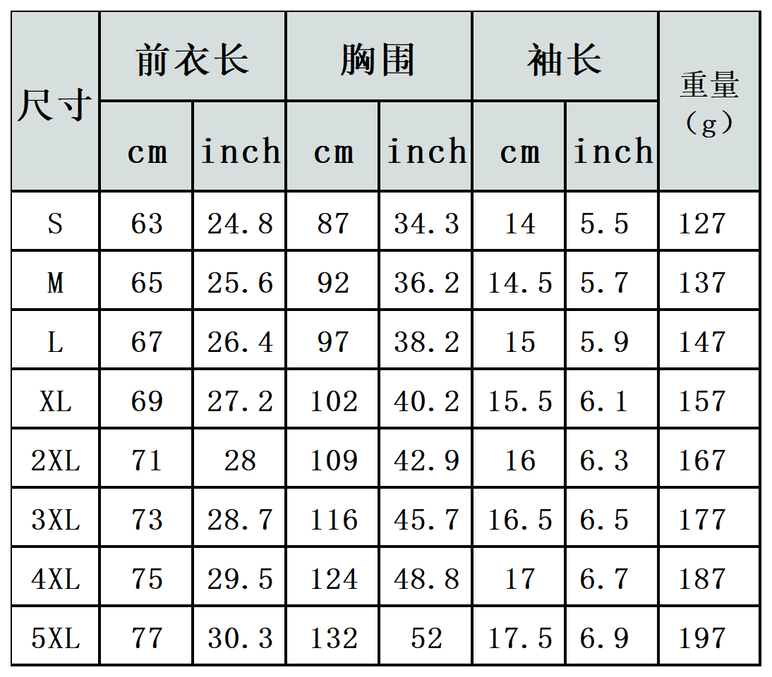 【特别说明】此尺码数据在衣服平铺下测量所得,因测量方法不同,误差在1-3cm内的属于正常现象。