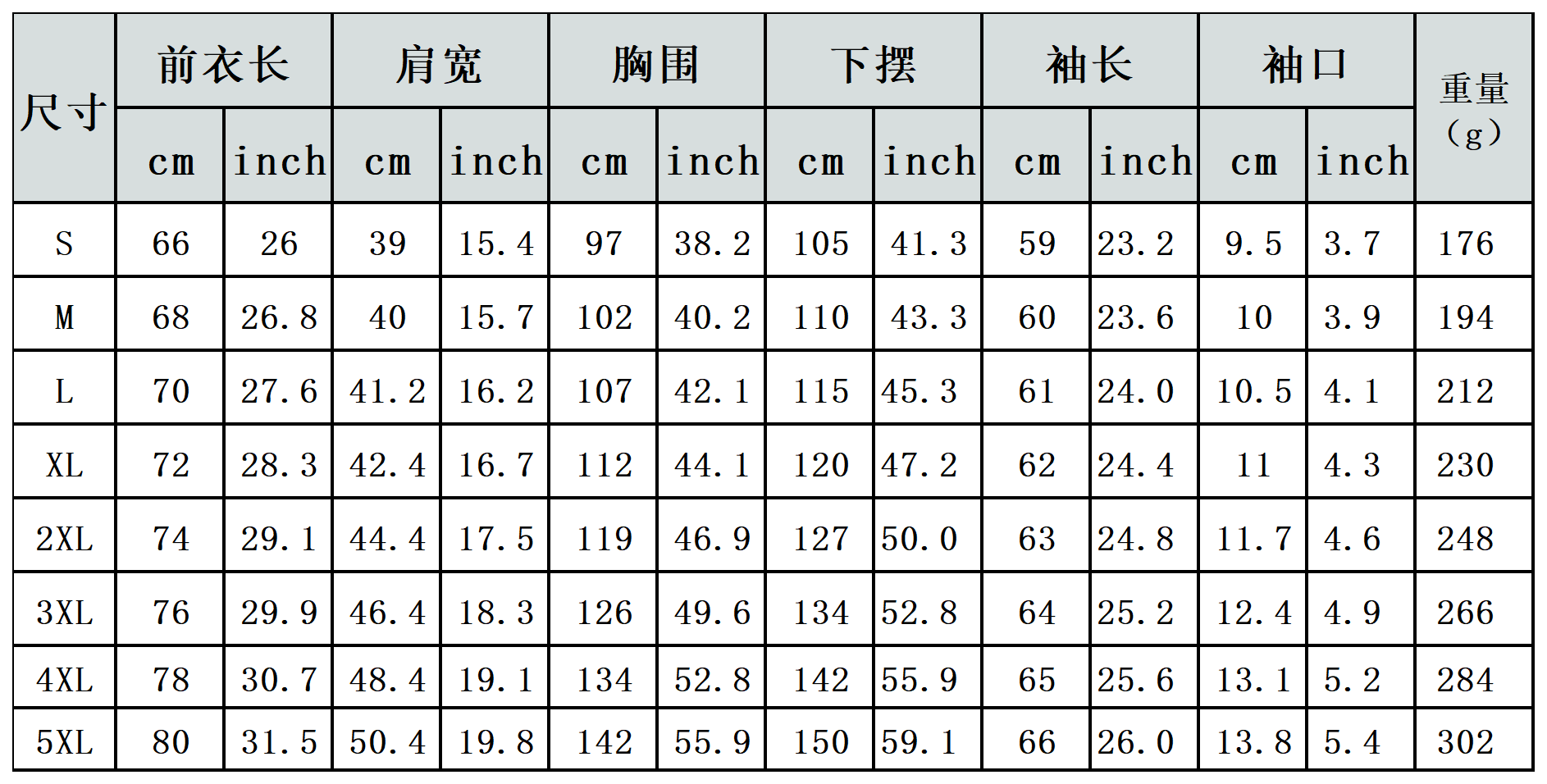 【特别说明】此尺码数据在衣服平铺下测量所得,因测量方法不同,误差在1-3cm内的属于正常现象