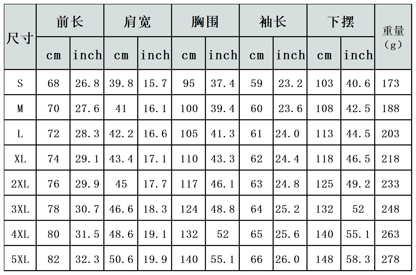 【特别说明】此尺码数据在衣服平铺下测量所得,因测量方法不同,误差在1-3cm内的属于正常现象