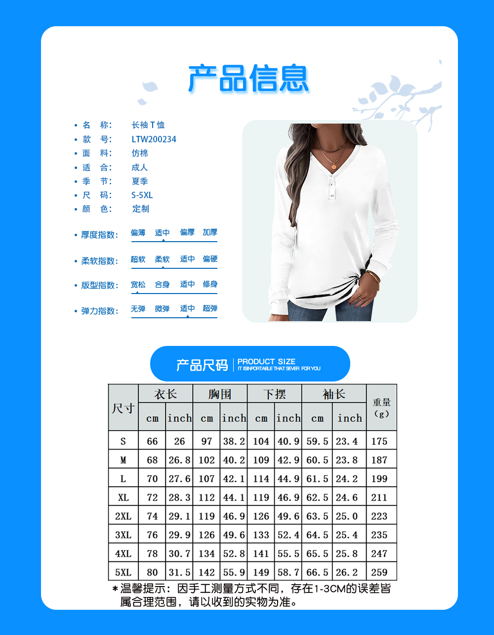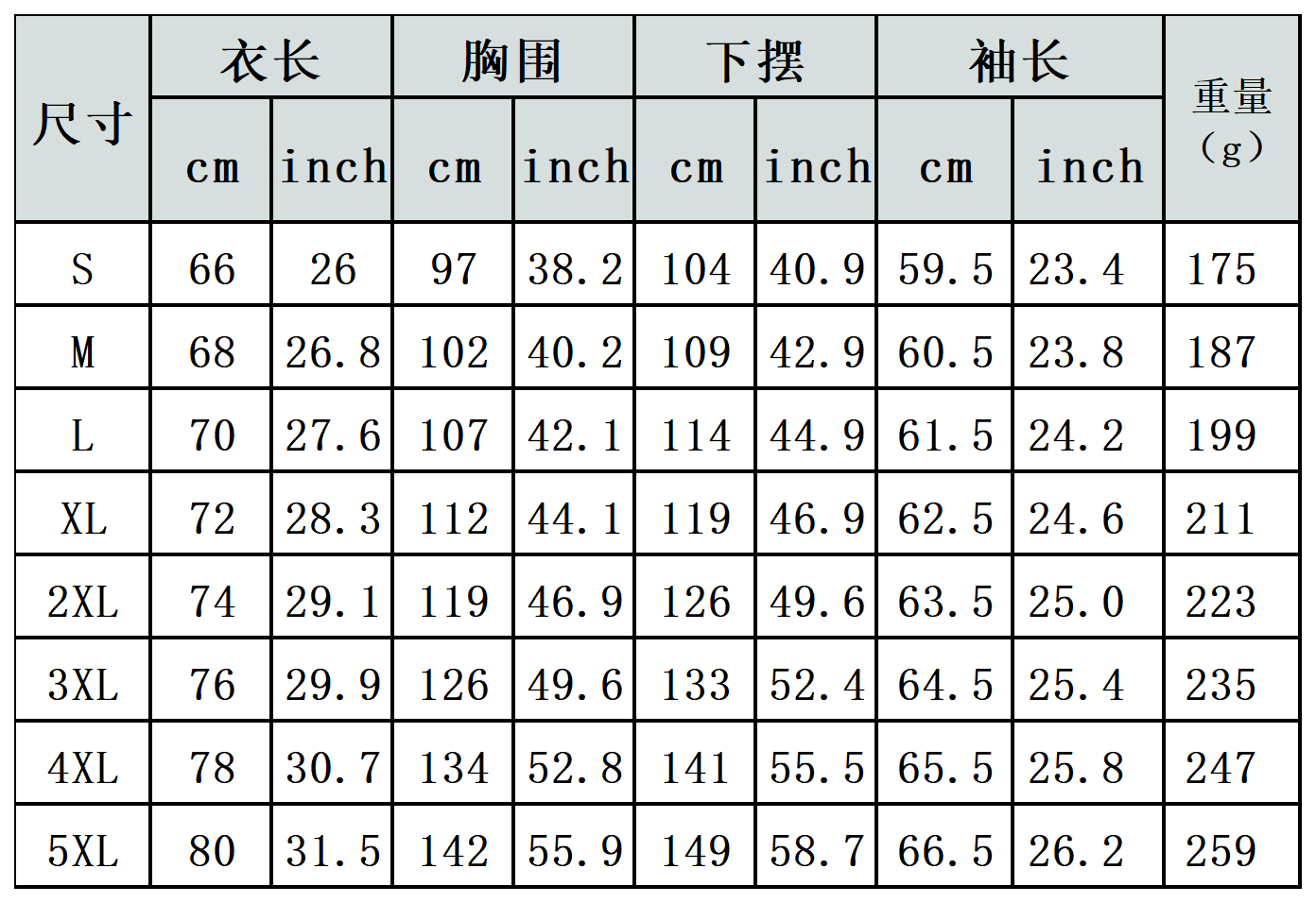 【特别说明】此尺码数据在衣服平铺下测量所得,因测量方法不同,误差在1-3cm内的属于正常现象