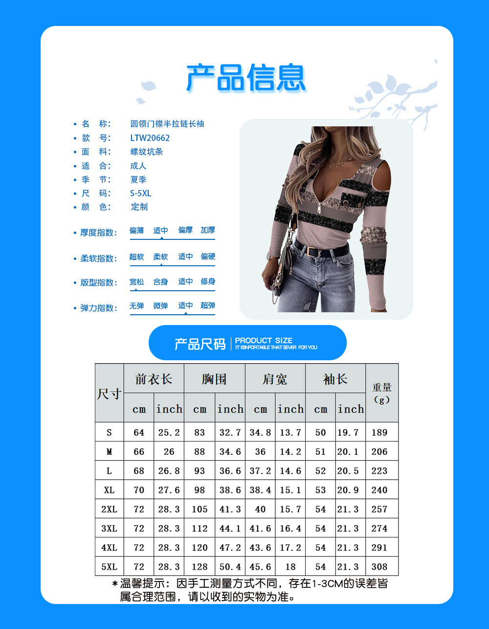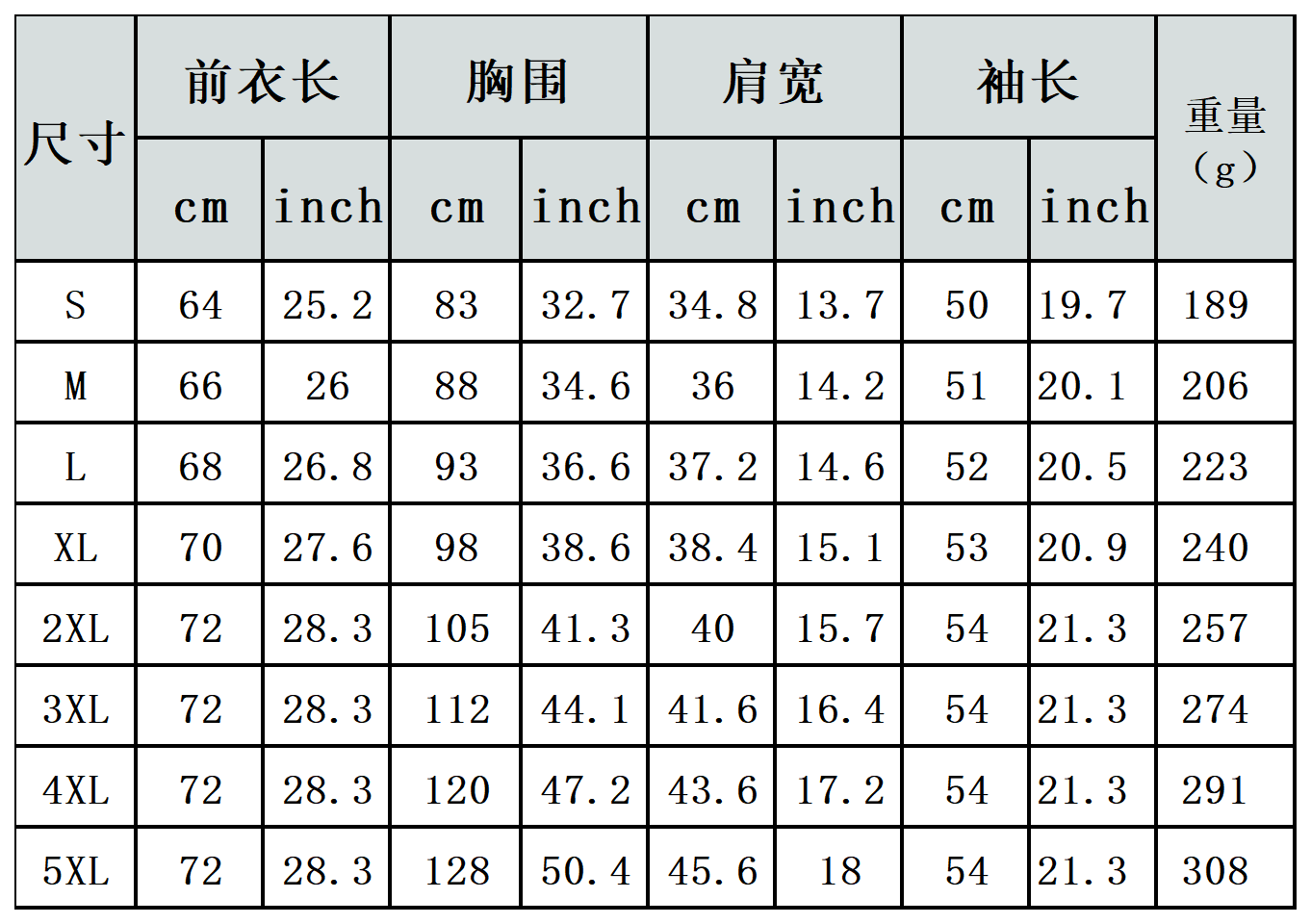 【特别说明】此尺码数据在衣服平铺下测量所得,因测量方法不同,误差在1-3cm内的属于正常现象