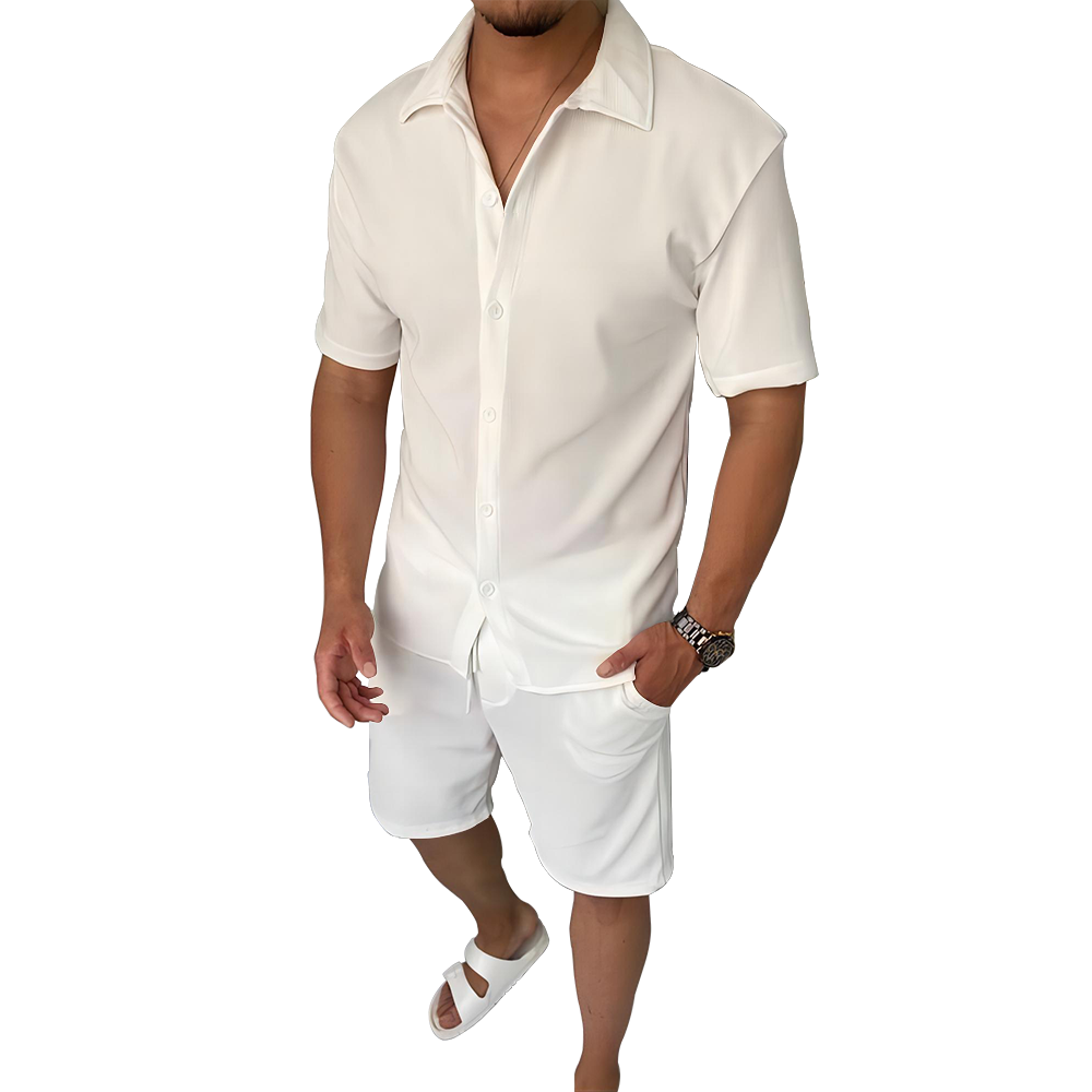 男数码印四面弹古巴领短袖衬衫+短裤LTM100300