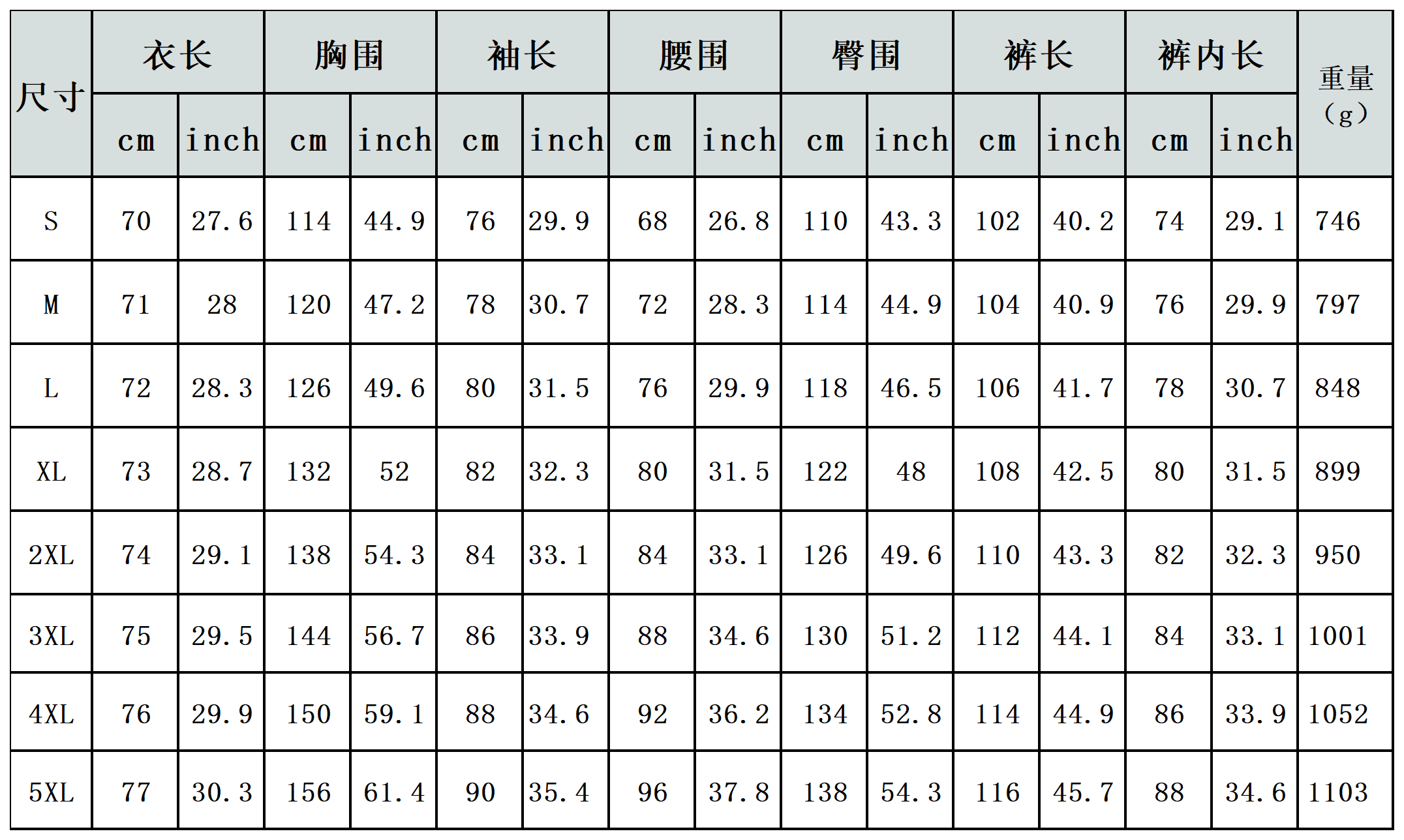 【特别说明】此尺码数据在衣服平铺下测量所得,因测量方法不同,误差在1-3cm内的属于正常现象
