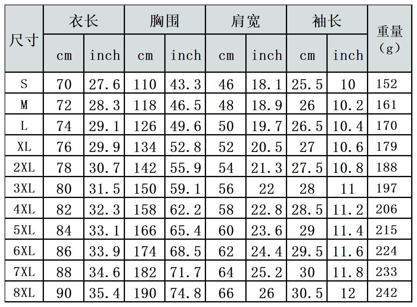 【特别说明】此尺码数据在衣服平铺下测量所得,因测量方法不同,误差在1-3cm内的属于正常现象