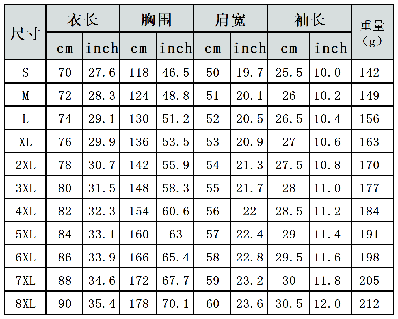 【特别说明】此尺码数据在衣服平铺下测量所得,因测量方法不同,误差在1-3cm内的属于正常现象