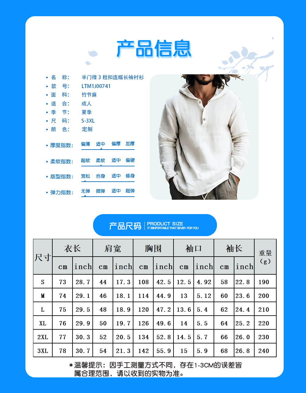 中文名称:半门襟3粒扣连帽衬衫英文名称:产品货号:LTM100741生产工艺: 满印印花产品材质: 涤纶(Polyester)
