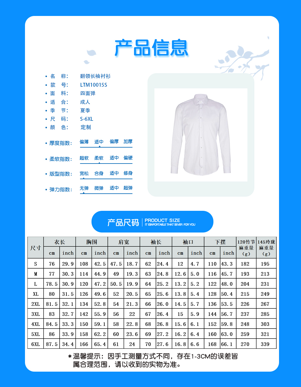 【特别说明】此尺码数据在衣服平铺下测量所得,因测量方法不同,误差在1-3cm内的属于正常现象