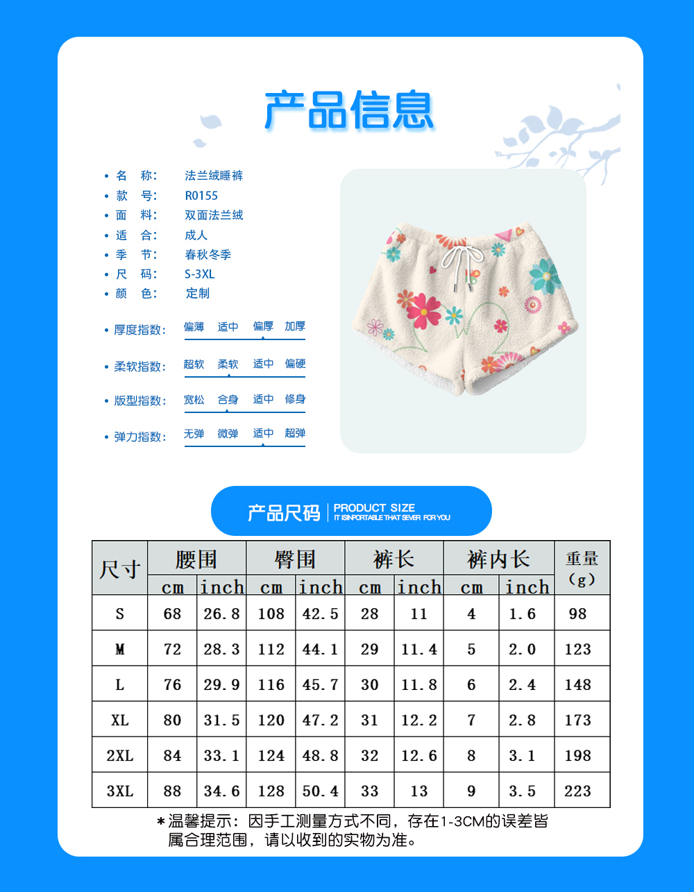 中文名称:法兰绒睡裤英文名称:产品货号:R0155生产工艺: 满印印花产品材质: 双面法兰绒