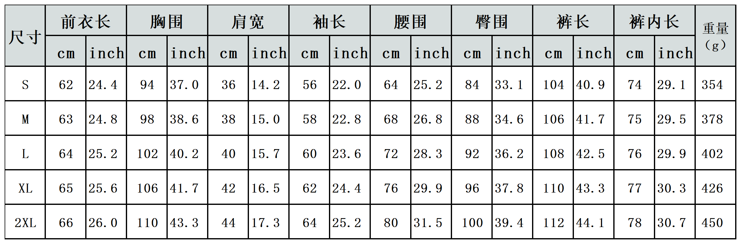 【特别说明】此尺码数据在衣服平铺下测量所得,因测量方法不同,误差在1-3cm内的属于正常现象