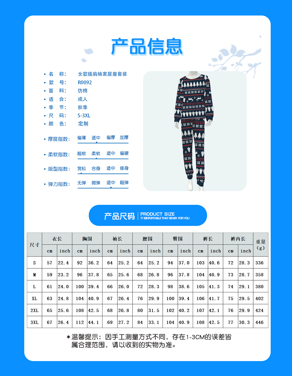 【适用场景】适合居家,适合春季、夏季和秋季穿着。