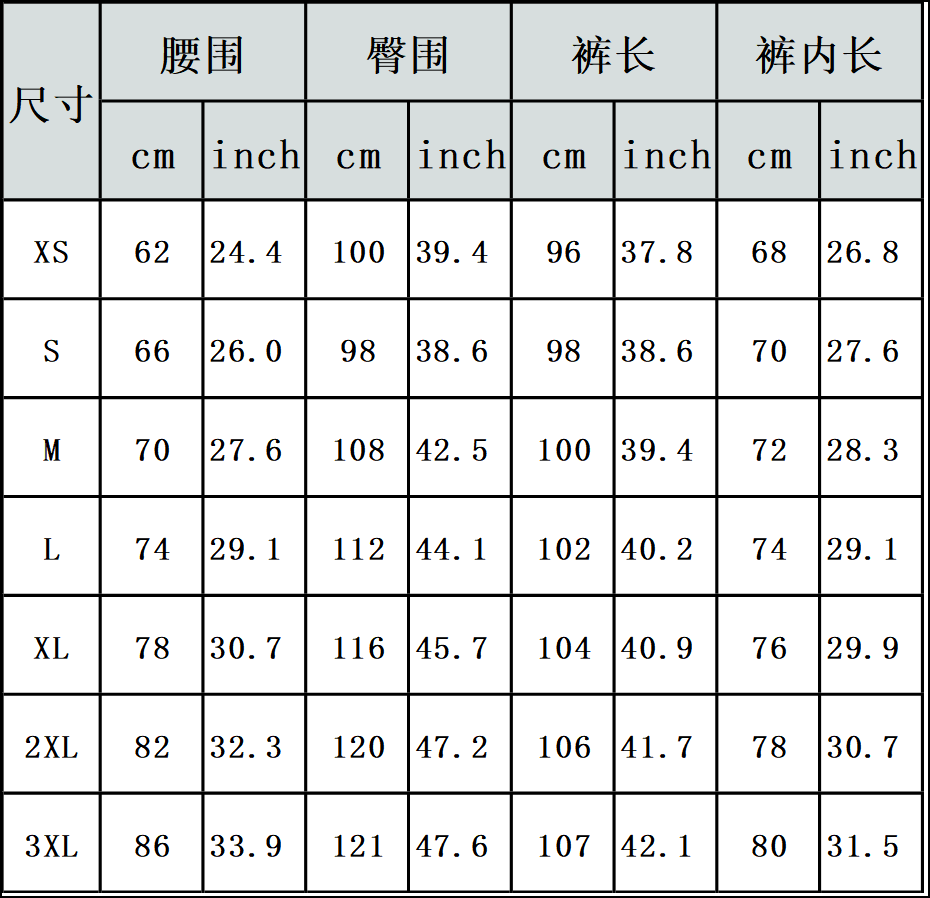 【特别说明】此尺码数据在衣服平铺下测量所得,因测量方法不同,误差在1-3cm内的属于正常现象