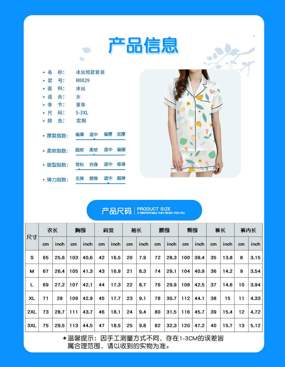【适用场景】适合居家,适合春季、夏季和秋季穿着。