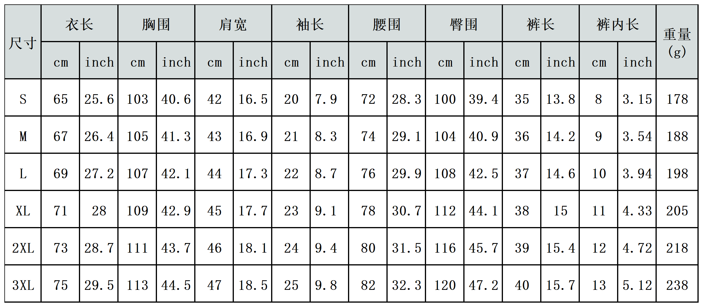 【特别说明】此尺码数据在衣服平铺下测量所得,因测量方法不同,误差在1-3cm内的属于正常现象