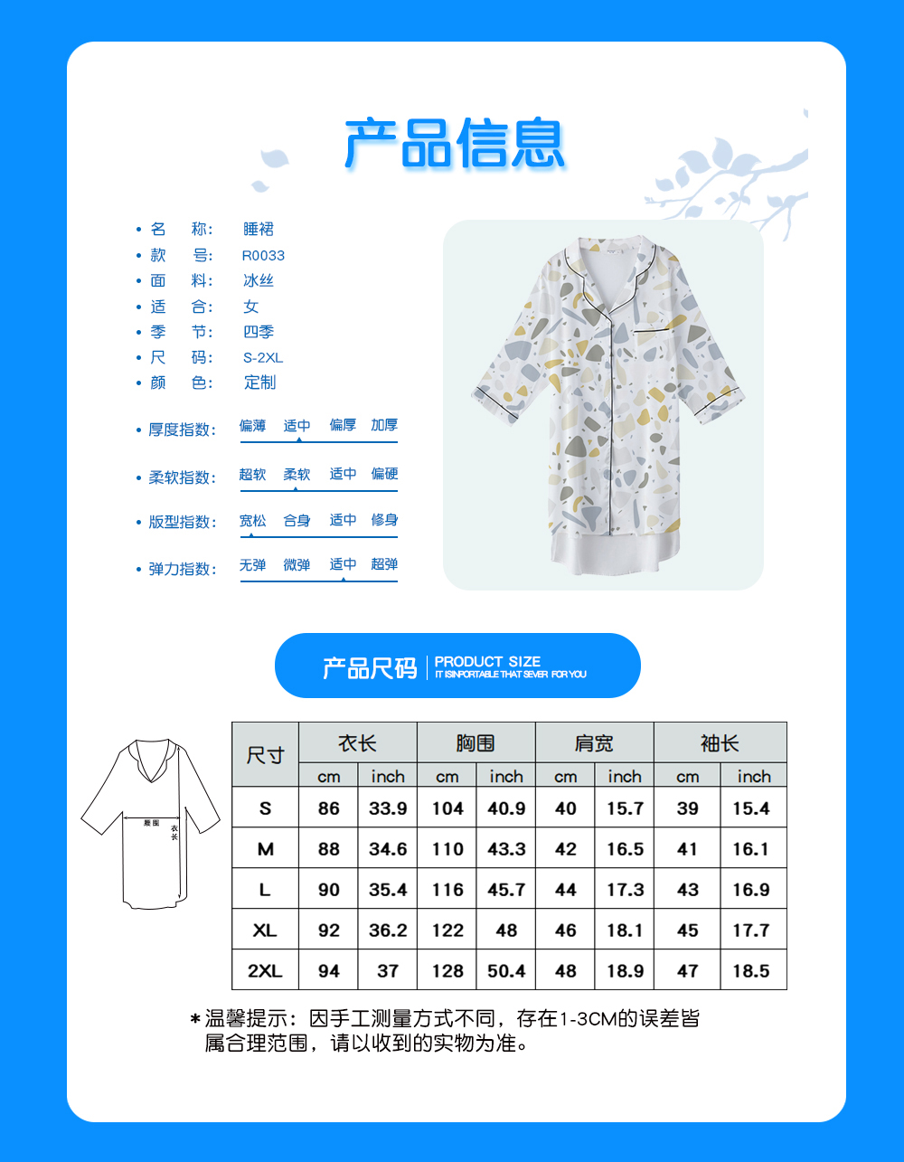 中文名称:SQ 睡裙英文名称: nightgown产品货号:R0033生产工艺: 满印印花产品材质: 冰丝