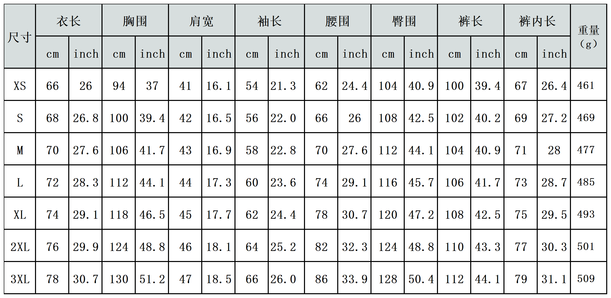 【特别说明】此尺码数据在衣服平铺下测量所得,因测量方法不同,误差在1-3cm内的属于正常现象