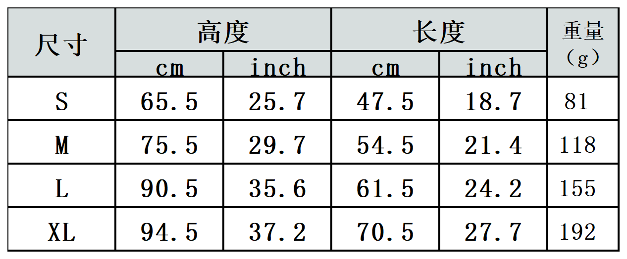 【特别说明】此尺码数据在衣服平铺下测量所得,因测量方法不同,误差在1-3cm内的属于正常现象