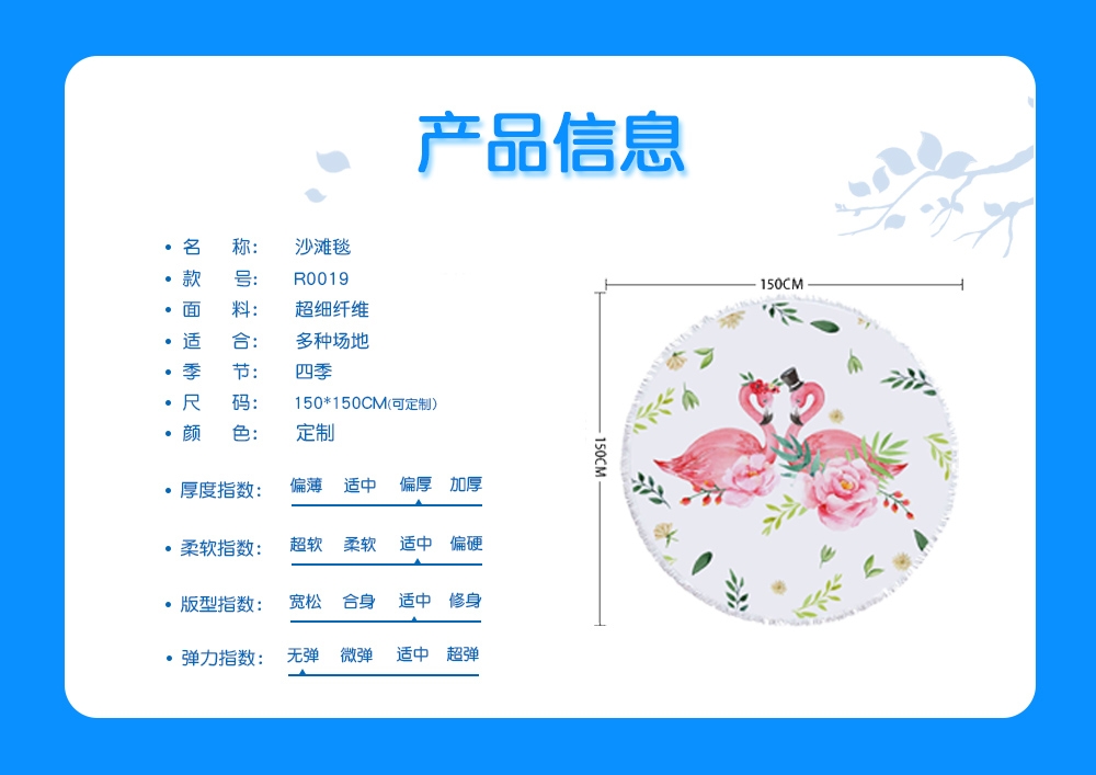 中文名称: STT 沙滩毯150X150cm英文名称: Beach blanket产品编号:R0019生产工艺: 满印印花产品材质:毛巾布