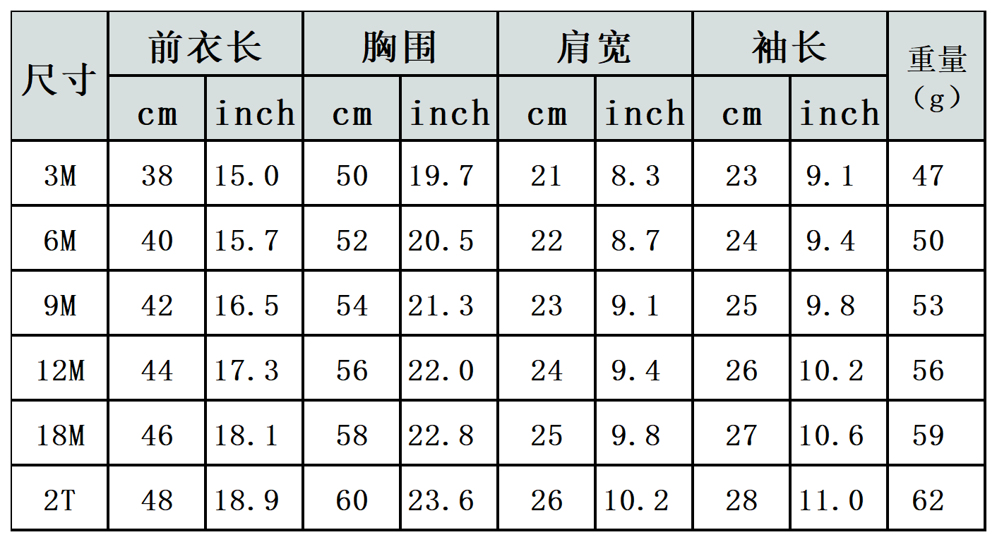 【特别说明】此尺码数据在衣服平铺下测量所得,因测量方法不同,误差在1-3cm内的属于正常现象
