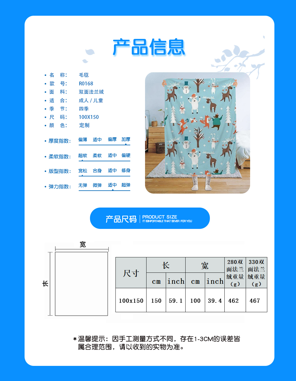 【材质说明】双面法兰绒