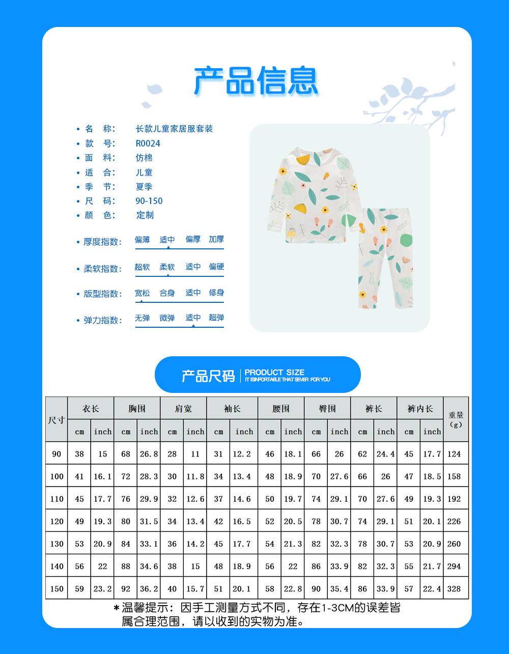 中文名称:长款儿童家居服英文名称:Long style children's home wear产品货号:R0024生产工艺: 满印印花产品材质: 涤纶(Polyester)