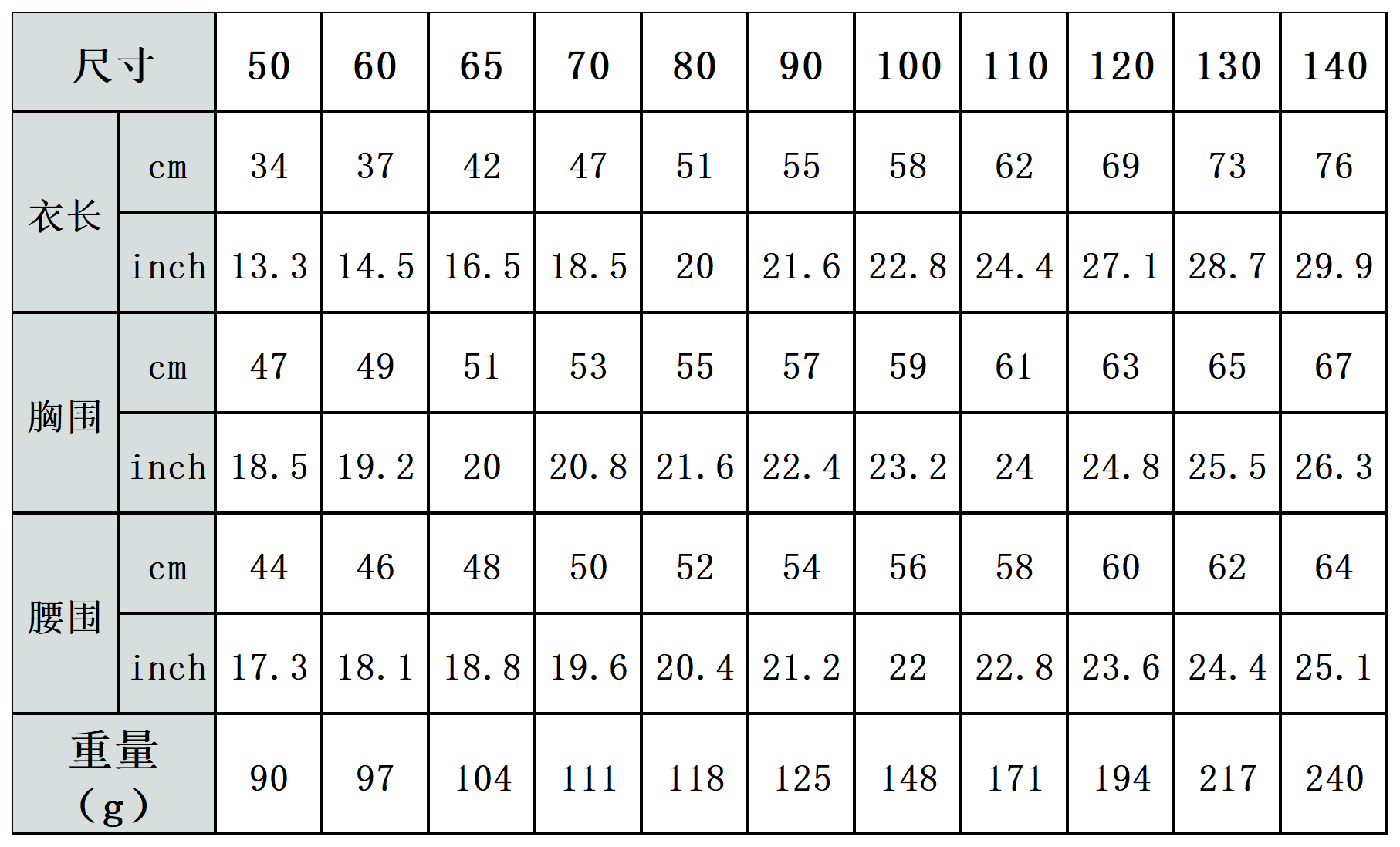 【特别说明】此尺码数据因测量方法不同,误差在1-3cm内的属于正常现象。